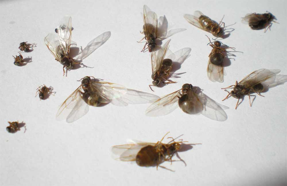 En último recurso, tenemos la posibilidad de realizar una pulverización si no ponemos coto a las hormigas con los productos anteriores. Como he explicado más arriba, ya no disponemos de productos para pulverizar a base de materias activas persistentes. Hoy en día lo que ha quedado son las materias activas de la familia piretroide que tienen un buen efecto de choque, pero son menos persistentes. Esto puede ayudar a que el cliente no vea hormigas durante un tiempo. En este punto, es recomendable la identificación correcta de la especie. Hemos de saber cuando se produce la enjambrazón, si es nativa o exótica, qué alimentos ingiere, etc. Todo ello permite ajustar el tratamiento y dar una solución adecuada.