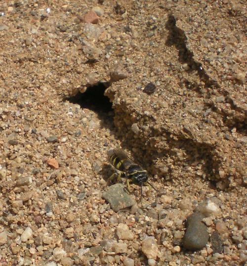 Fig 8. Avispa de la arena del género Bembix saliendo del nido. / C. Pradera 07-2012