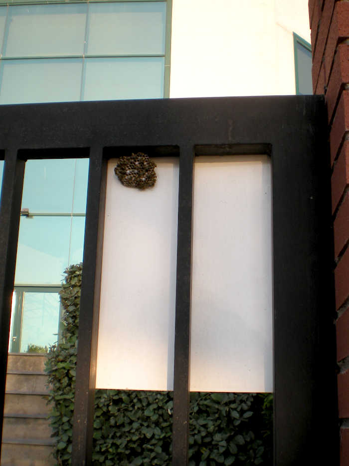 Fig 1. Imagen del avispero situado en la puerta de entrada a una empresa en Terrssa./ C. Pradera 08-2012