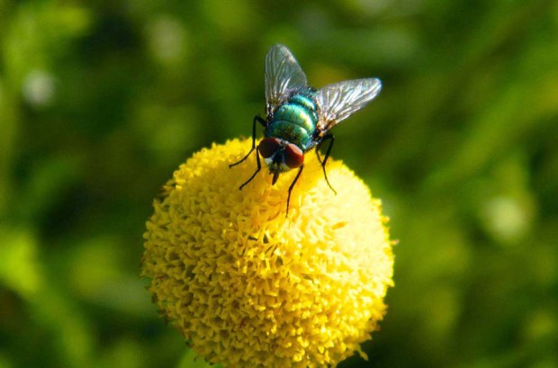 Fig 6. Moscarda del género Lucilia posada sobre una flor./ C. Pradera 06-2013