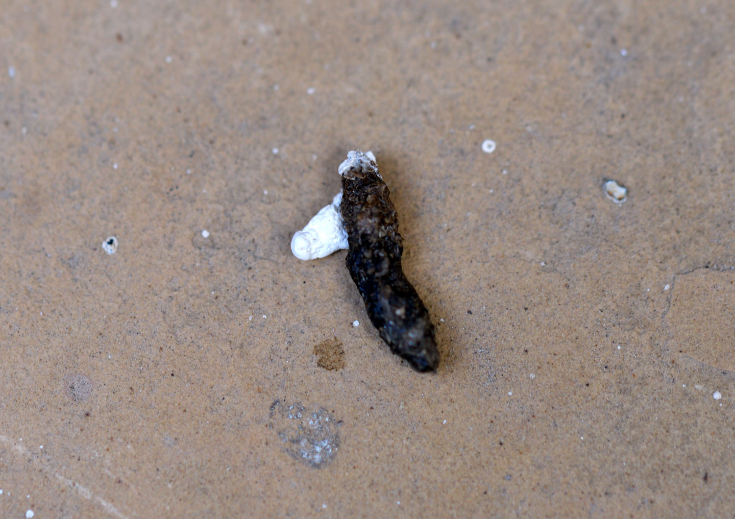 Rastreando un poco más, encontré de estas heces con punta blanca en lugares donde se que transitan los gekkos, confirmando que se trata de estos animalitos.