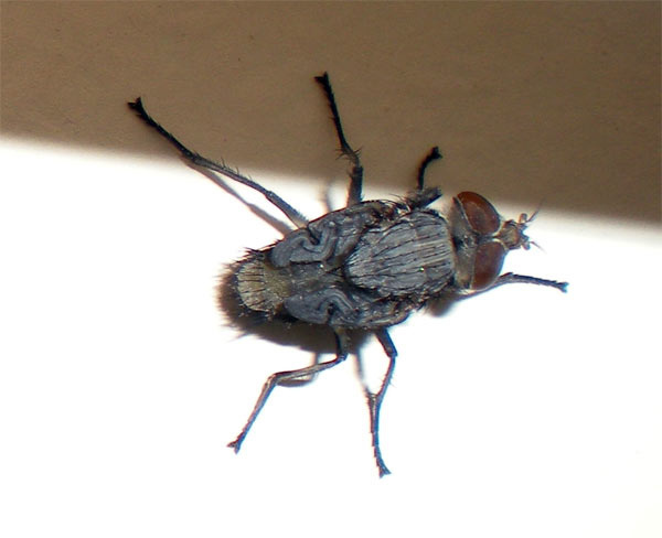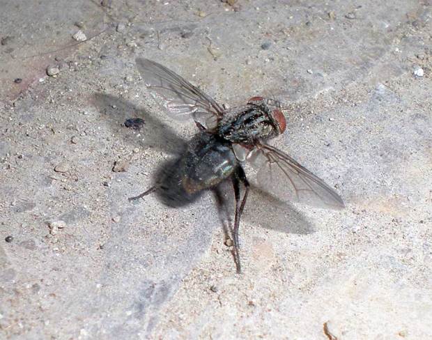 Fig 8. Moscardas con las alas extendidas pero que aún no tienen la coloración azul metálica del abdomen, ni los colores oscuros del resto del cuerpo./ C. Pradera 11-2012