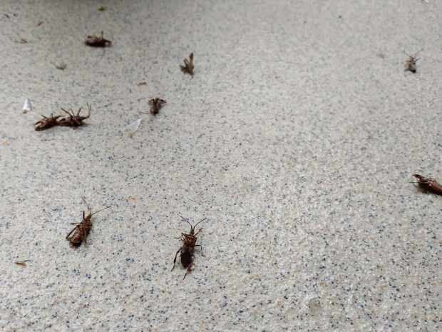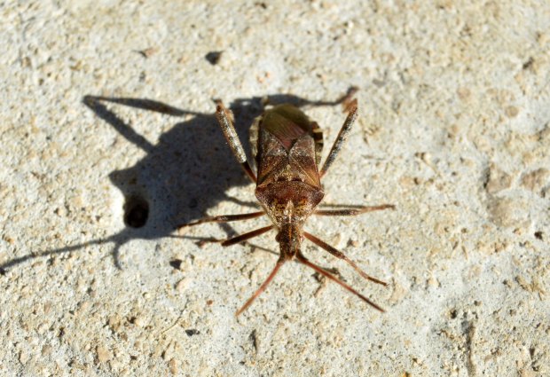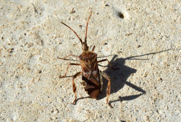 El tamaño de esta chinche es respetable, pues es de entre 16 y 20 milímetros. Destaca de esta, a mi parecer, las expansiones de las tibias del tercer par de patas. Esto es algo característico de la familia a la que pertenece. Esta chinche se une al gran número de especies invasoras en nuestro país. Son cosas de la mundialización. Lo que yo he visto esta mañana, es algo habitual hacia finales de octubre, cuando empiezan los fríos. La chinche de las piñas, cuando encuentra un lugar que le resguarde del frío, excreta una feromona para atraer a otras chinches. Este comportamiento de agregación es un problema si se congregan en una casa. Esto implica la aparición a centenares con los problemas que pueda ocasionar.