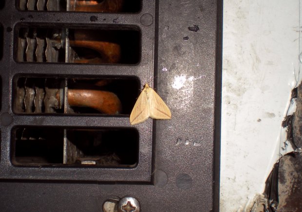 Fig 1. Mariposa Rhodometra sacraria en el motor de un tirador de cerveza en un bar de Rubí./ C. Pradera 11-2012