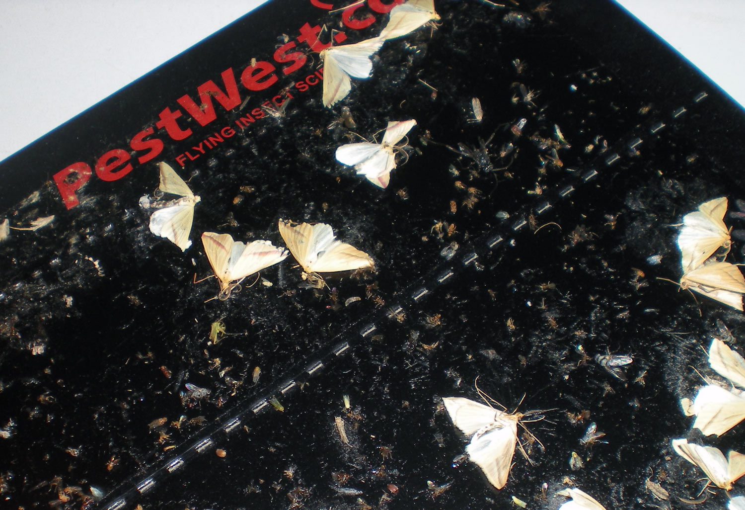 Fig 3. Mariposas Rhodometra sacraria en una lámina adhesiva en Gracia, Barcelona./ C. Pradera 11-2012