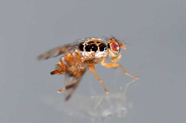 Es una especie muy interesante de ver y estudiar porque es una auténtica plaga de los árboles frutales. La hembra deposita los huevos en la fruta cuando esta empieza a madurar. Deposita los huevos en paquetes en diferentes frutas. Tiene un ciclo de vida corto por lo que en un año pueden haber hasta 6 generaciones. Es originaria del norte de África desde donde parece que se expandió por el resto del Mediterráneo en siglos pasados. Y tiempos recientes ha sido llevada al resto de continentes a través del comercio de fruta.