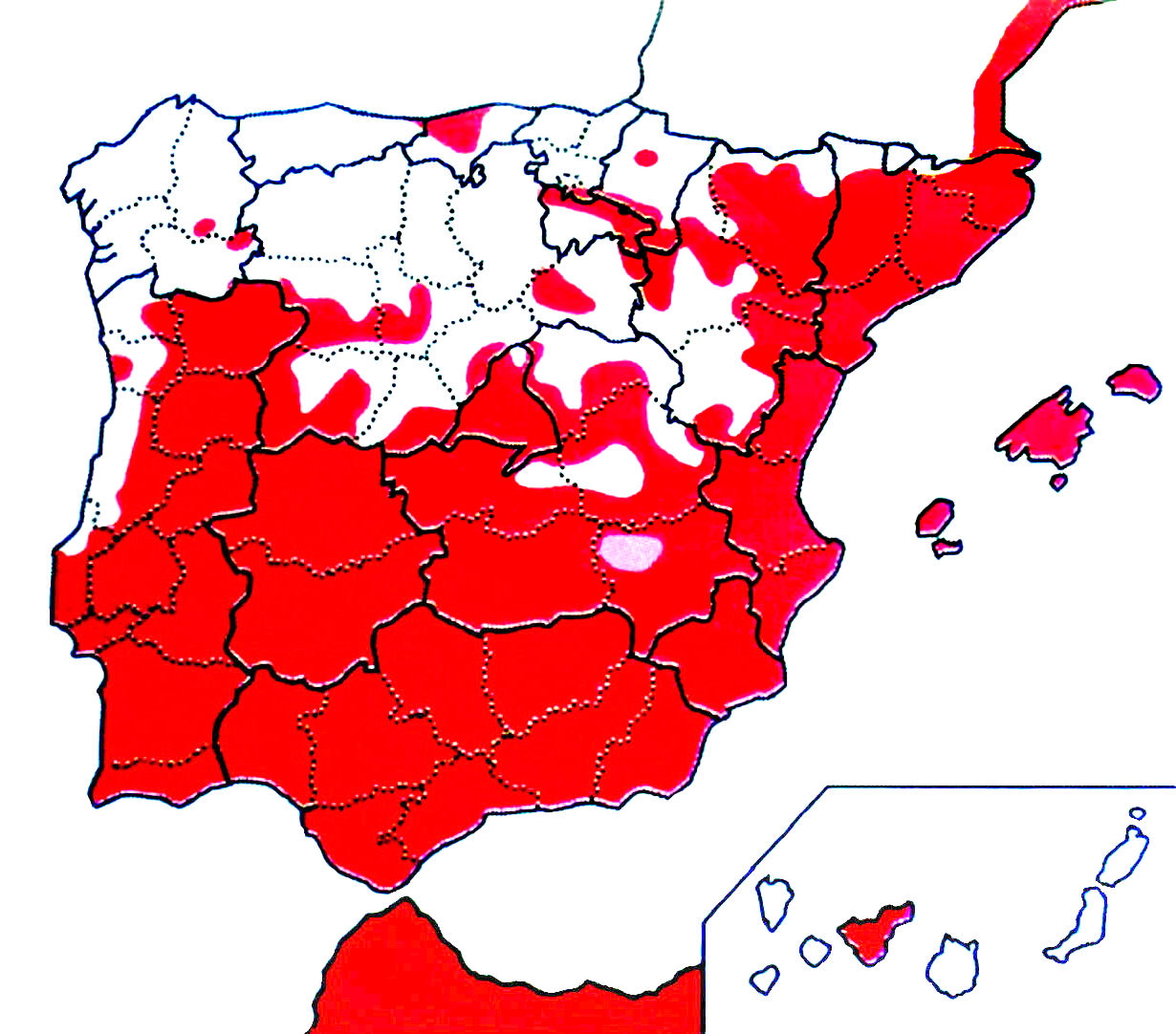 Fig 2. Distribución de salamanquesa común en la Península Ibérica./ A. Masó & M. Pijoan 2011