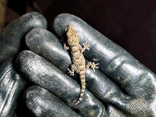 Fig 13. Salamanquesa común joven (Tarentola mauritanica) en Barcelona./ C. Pradera 12-2020