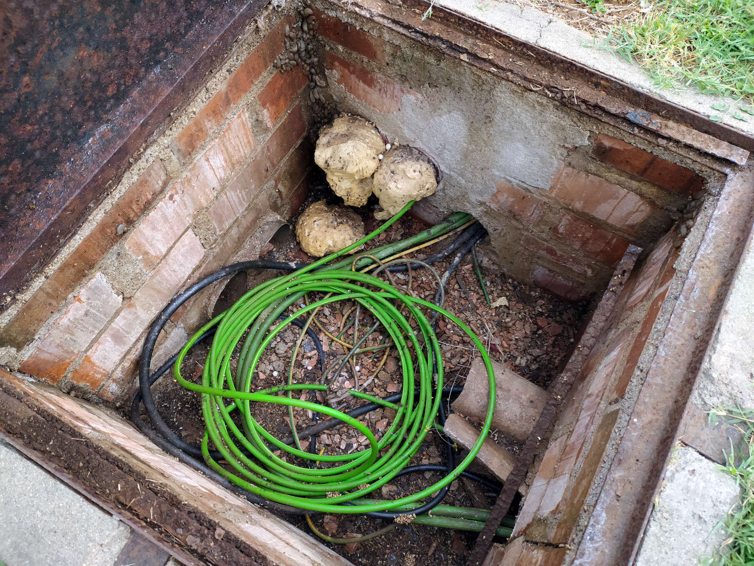 Fig 7. Registro de cableado eléctrico con puesta de huevos de salamanquesa común (Tarentola mauritanica)./ C. Pradera 08-2020