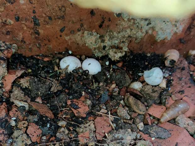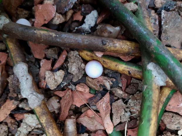 Fig 10. Huevos de salamanquesa común (Tarentola mauritanica) en un registro de cableado eléctrico de Barcelona./ C. Pradera 08-2020