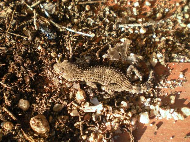 Fig 4. Salamanquesa común (Tarentola mauritanica) sobre un ladrillo en un jardín de Barcelona./ C. Pradera 12-2012