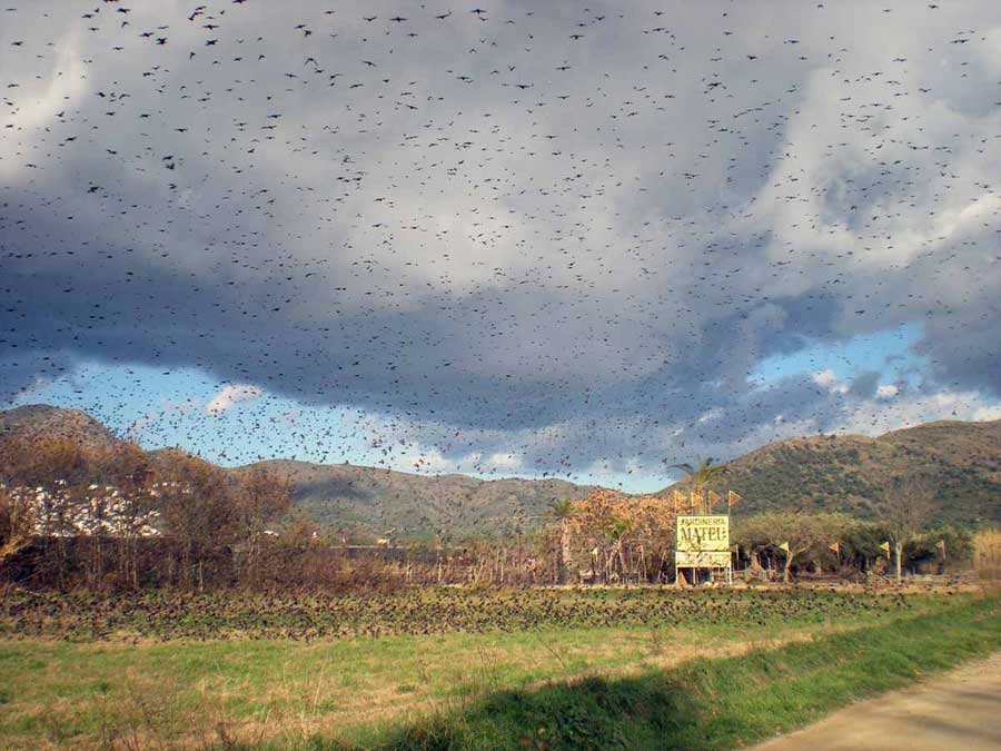 Ayer estuve en Roses, en la comarca del Alt Empurdà, Girona. Hacía un día bonito y sin viento. Al entrar en este pueblo viniendo de Figueras se podía ver el cielo lleno de estorninos. Los árboles de las afueras estaban copados de estas aves. Diversas bandadas volaban de un lado hacia otro. No sabría decir qué cantidad de estorninos había, pero eran muchos.
