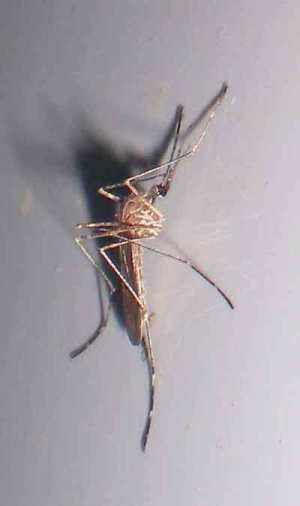 El mosquito común (Culex pipiens) mide aproximadamente medio centímetro de largo. En cambio, este que estaba sobre un azulejo blanco era más grande. Lo observé y me pareció bonito. Lo capturé y me lo llevó para identificarlo. En casa lo medí. De largo hacía casi 10 milímetros. Por el tamaño de los palpos y la forma de las antenas, vi que se trataba de un ejemplar hembra. Llegué a la conclusión de que pertenecía a la especie Culiseta longiareolota. Y más en concreto, se trataba de una hembra porque tenía los pedipalpos más cortos y las antenas no eran plumosas, como también sucede con la hembra de Culex pipiens.