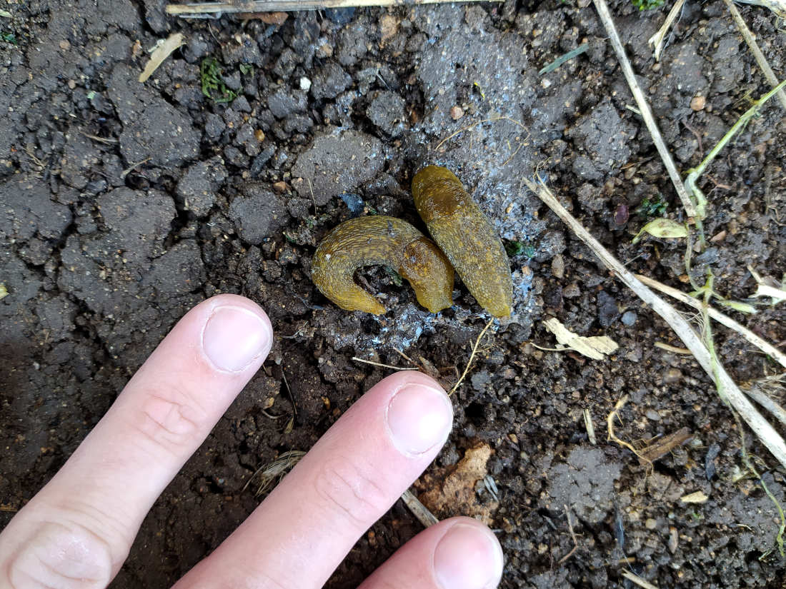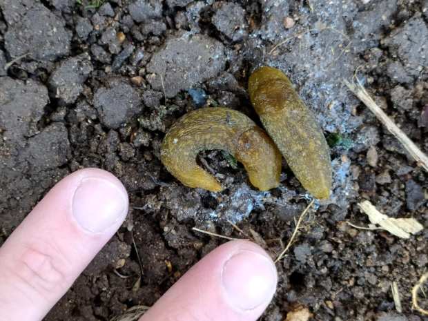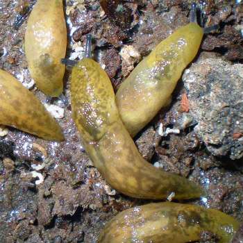 Es habitual encontrar babosas detrás de dos grandes marmitas para elaboración de caldos que quedan cerca de una puerta de entrada. Estas marmitas están separados de la pared y dejan un amplio espacio en el que se ha acumulado materia orgánica y tierra. Según he podido observar, en la cocina abunda la babosa Limax (Limacus) flavus, conocida coloquialmente como babosa amarilla. Las babosas estaban ellas tan tranquilas en ese espacio protegido hasta que las descubrí y las azucé un poco para que despertaran y salieran bien guapas en las fotos.