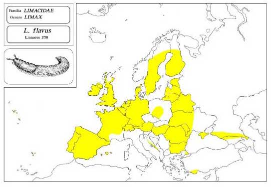Fig 3. Distribución de Limax (Limacus) flavus en Europa./ Universidade de Santiago de Compostela 2012