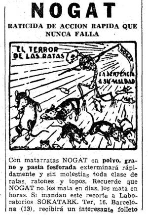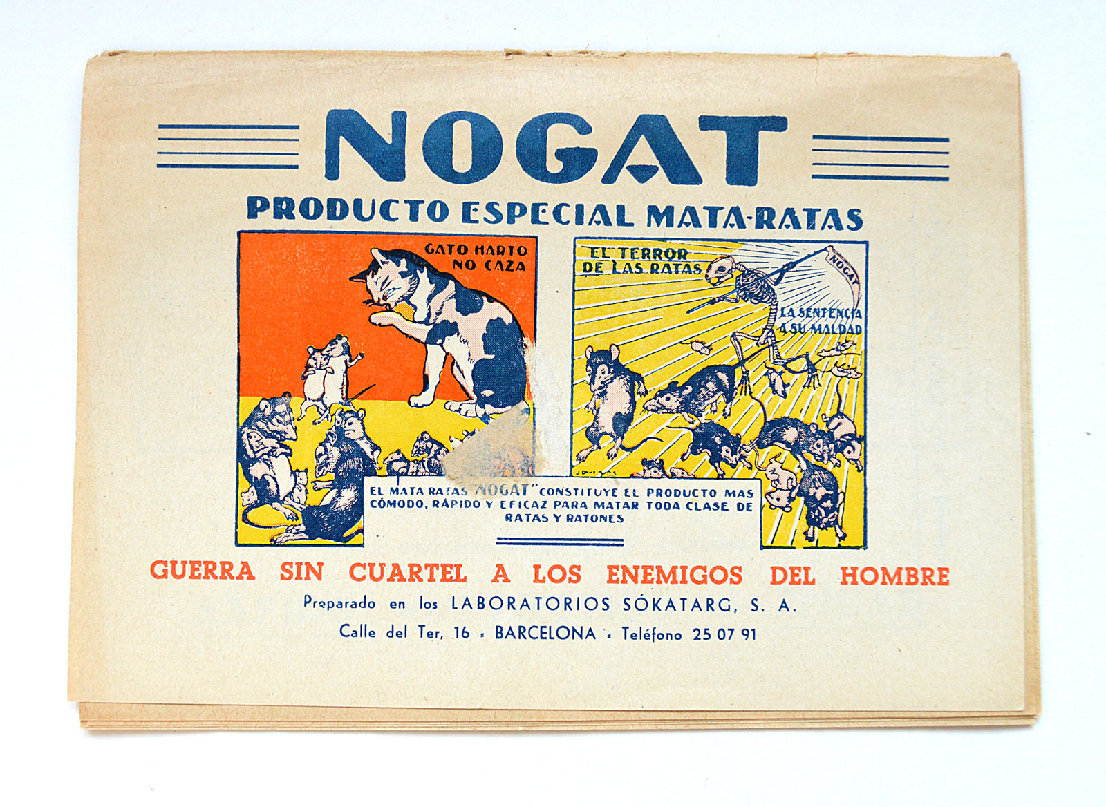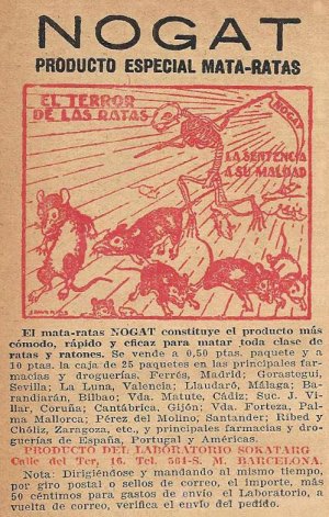 Hace tiempo que tengo curiosidad por saber más sobre el control de plagas en su dimensión histórica. En internet se encuentra información en hemerotecas digitales donde se pueden consultar libros, revistas y periódicos. Además existen páginas web de venta de productos antiguos donde aparecen joyas del pasado. Recientemente, he adquirido libros antiguos donde se muestra cómo se luchaba contra las plagas. Me parece importante saber cómo se trabajaba entonces, las técnicas y productos, para tener una perspectiva de dónde venimos. Poco a poco iré tirando del hilo de la historia. Empezaré mi primera entrada de corte histórico para escribir sobre el matarratas Nogat de Laboratorios Sókatarg, muy conocido y utilizado en España.