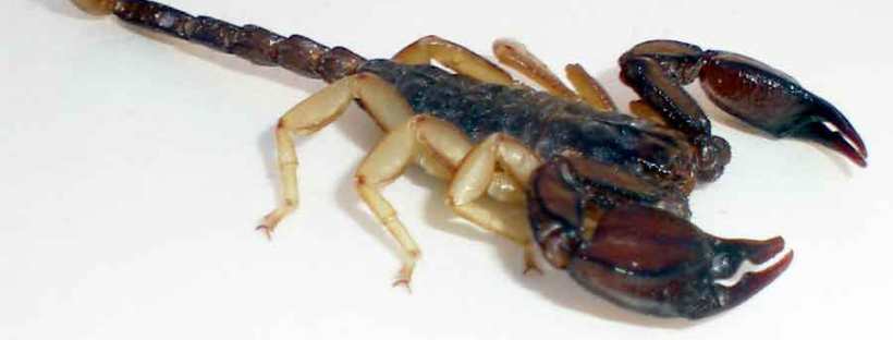 Ayer encontré en Montserrat un escorpión que estaba cerca de la puerta de entrada al conjunto arquitectónico del Monasterio, a 720 m de altitud. Agonizaba. Lo recogí y le tomé unas fotografías. No ha sido difícil identificar la especie, porque en la Península Ibérica tenemos pocas especies de escorpiones. Según los manuales tenemos ocho especies autóctonas y una exótica [1].
