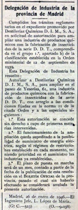 [2] C. Pradera. 19-02-2013. Apuntes sobre la producción de DDT en España. El desinsectador y desratizador.