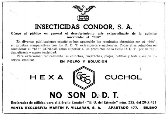abc-6-08-1946-insecticidas-condor Previous Next Publicado 13/06/2016 en 996 × 684 en Apuntes sobre la producción de hexaclorociclohexano (HCH) y su isómero gamma (lindano) en España
