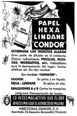 hexa-1952 Previous Next Publicado 18/09/2013 en 450 × 680 en Apuntes sobre la producción de hexaclorociclohexano (HCH) y su isómero gamma (lindano) en España Foto 2. Anuncio del insecticida Hexa aparecido en 1952 en periódico La Vanguardia.