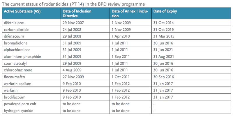 Fig 1. Tabla aparecida en «Sustainable use of rodenticides as biocides in the EU», por el European Biocidal Products Forum (EBPF).
