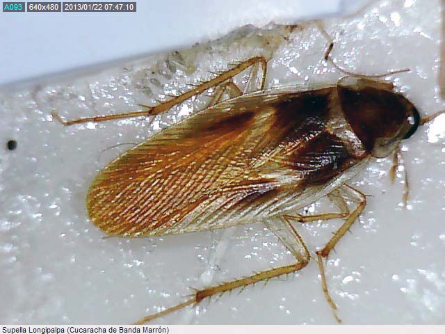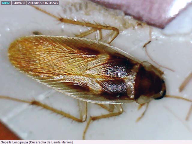 Esta entrada la escribo motivado por dos fotografías que me ha enviado Luis Lozano, Director Técnico de la empresa Sistemas de Gestión Ambiental SL (SIGEAM). Esta empresa de control de plagas de Barcelona detectó ya en julio de 2011 la presencia de la cucaracha de banda marrón (Supella longipalpa). Según me comenta Luis Lozano, fue el técnico Carles Fortea quien la descubrió al ver que era diferente a la cucaracha alemana (Blattella germanica).