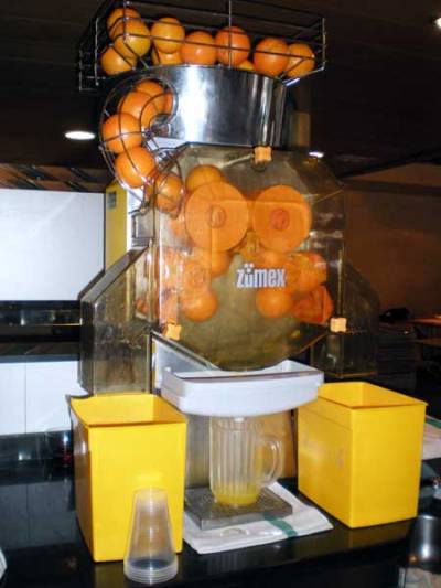 Fig 1. Máquina para exprimir naranjas. Si en un local hay mosca de vinagre, se la verá revolotear cerca de la zumera./ C. Pradera 02-2013