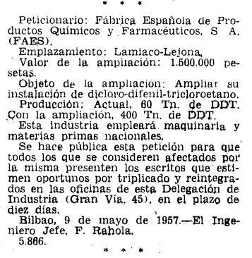 boe 12 de mayo de 1957 num 137 pag. 1666 Previous Publicado 02/01/2025 en 357 × 366 en Apuntes sobre la producción de DDT en España