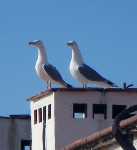 La gaviota patiamarilla (Larus michahellis) está a punto de iniciar su período de reproducción que va de abril a julio. Habrá empezado a buscar donde ubicar el nido. Hoy me he subido al tejado de un hotel en Tossa de Mar, Girona, y se han puesto muy nerviosas. Han empezado a chillar con gran escándalo y a volar por encima de mí a poca altura. Por suerte, no estamos en plena época de cría porque se me hubieran echado encima. En la imagen número 1 se puede ver el tejado donde cada año las gaviotas construyen sus nidos.