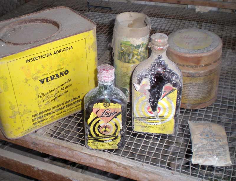 Fig 3. Imagen de los insecticidas de los años 60 que encontré en la casa abandonada./ C. Pradera 03-2013