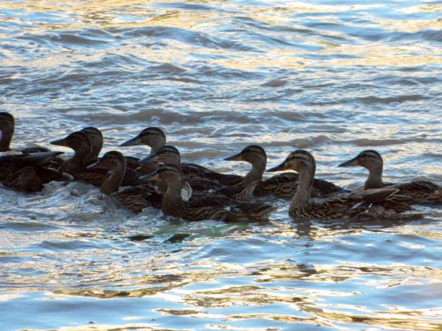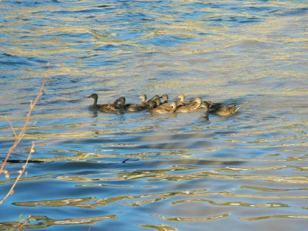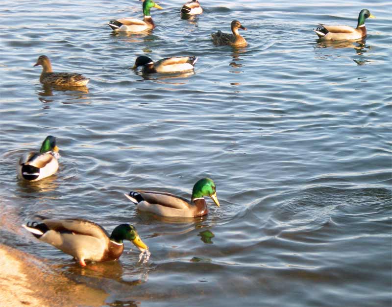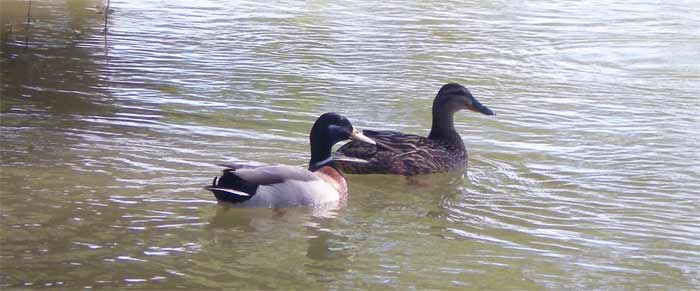 Se trata de aves muy bellas. El macho y la hembra tienen el plumaje muy diferentes. El dimorfismo sexual es acusado. El macho posee una coloración más vistosa que la de la hembra. Del macho destaca el cuello y la cabeza con plumaje de color verde y el pico amarillo. El resto del cuerpo es de color marrón con zonas claras. La hembra, en cambio, es más discreta. La coloración marrón de su plumaje parece diseñada para esconderse entre las plantas y cañas de la orilla del río. El pico es oscuro. Hay que decir que estos patos hacen las delicias de los niños en los parques. De pequeño, yo pensaba que la macho y la hembra del ánade real eran dos especies diferentes. He leído que esta diferencia llevó a Linneo a clasificar al macho y la hembra del ánade real como dos especies diferentes. Para acabar diré que se reproduce de marzo a junio y que las parejas pueden tener de 3 a 12 polluelos (fig. 4 y 5). Tengo la suerte de vivir cerca del río Besós (Barcelona). Hacia mayo se pueden ver las patas nadando junto a sus patitos. Es una estampa enternecedora. Me encanta cuando graznan.