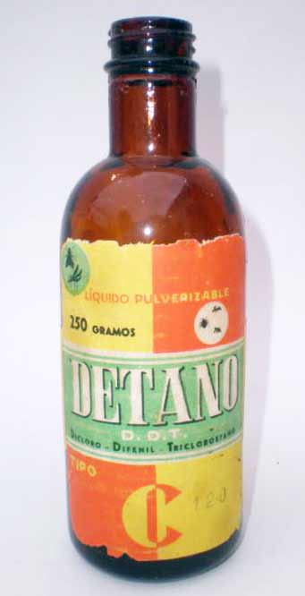 También fue comercializado un DETANO en formulación líquida para pulverización. En la imagen número 3 se puede ver una imagen del envase. Imagino yo que sería para pulverizadora de émbolo y para uso doméstico. Se promocionaba como un insecticida que todo lo puede contra moscas, mosquitos, chinches, etc. Con el mismo nombre comercial he encontrado un producto fumígeno a base de lindano para uso doméstico. En otras entradas ya he explicado que los papeles o pastillas fumígenas a base de lindano aparecieron a principios de la década de 1950. Este producto fue ideado por alguna casa comercial que desconozco, pero fue rápidamente copiado por las demás.