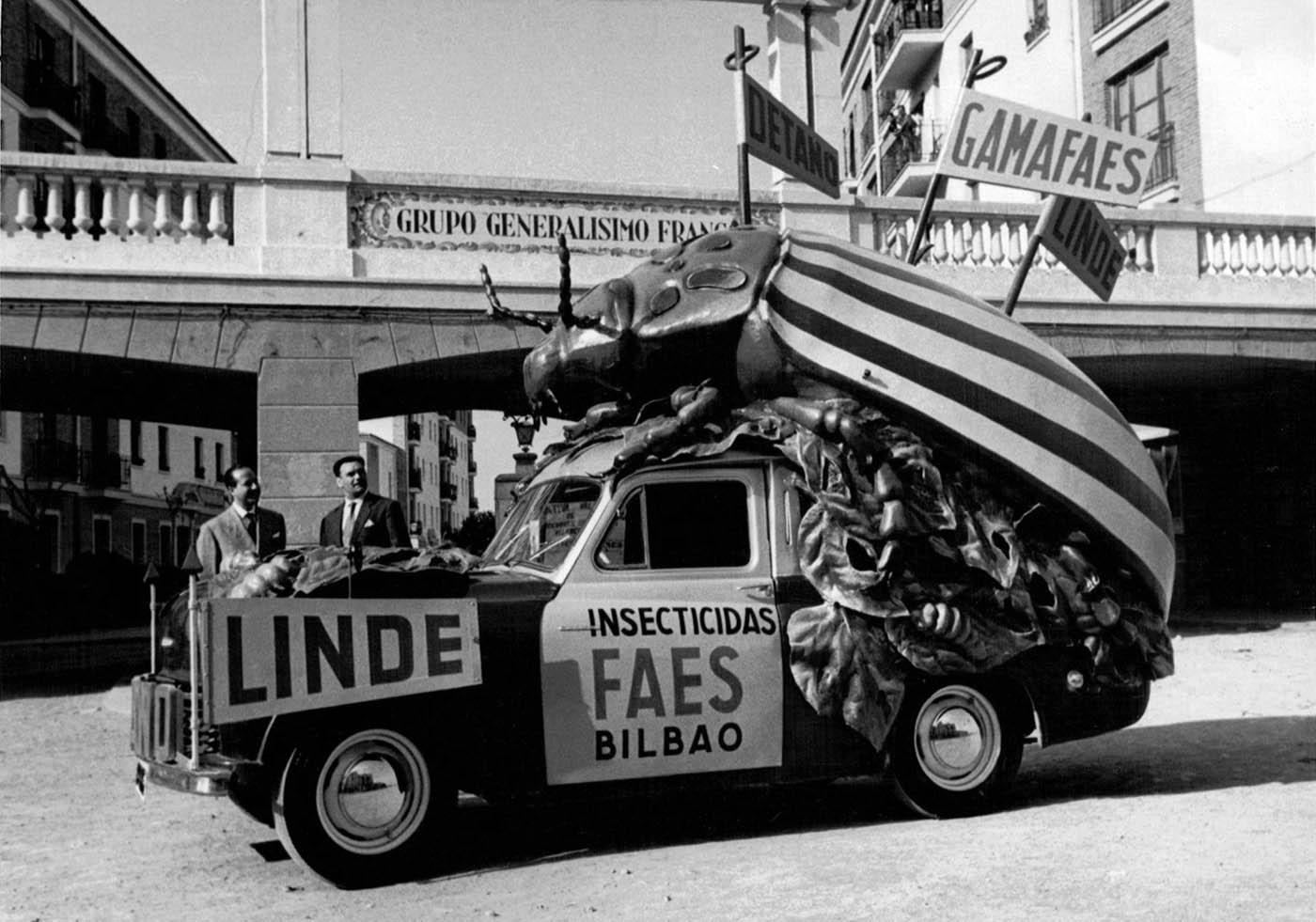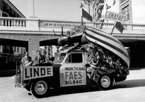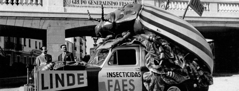 Fig 1. Camioneta de FAES para la promoción de productos insecticidas con lindano, década de 1950./ C. Pradera 2018