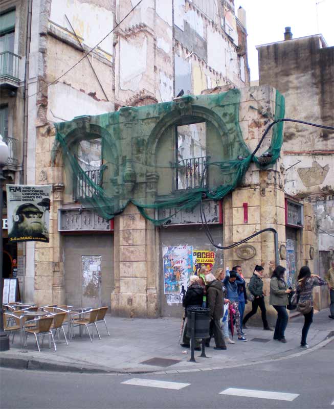 Fig 1. Restos de la fachada del edificio que se levantaba en la esquina de Rambla Nova con Fortuny./ C. Pradera 05-2013