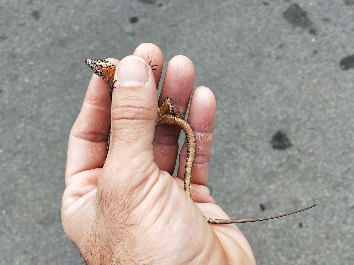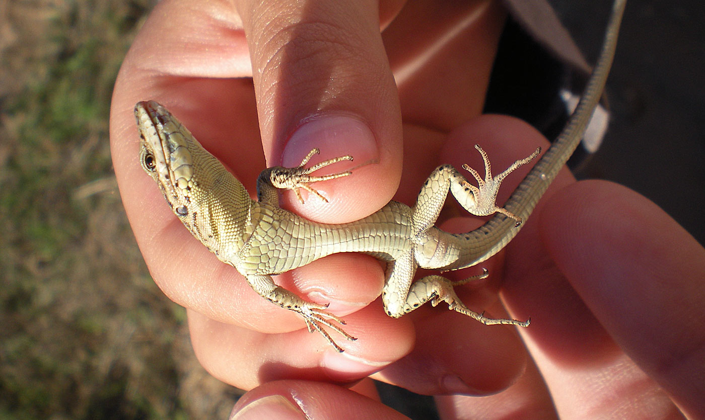 Fig 5. Paseando por el río Besós me encontré que un niño había capturado una lagartija y le pedí que me dejara hacer una foto./ C. Pradera 09-2012