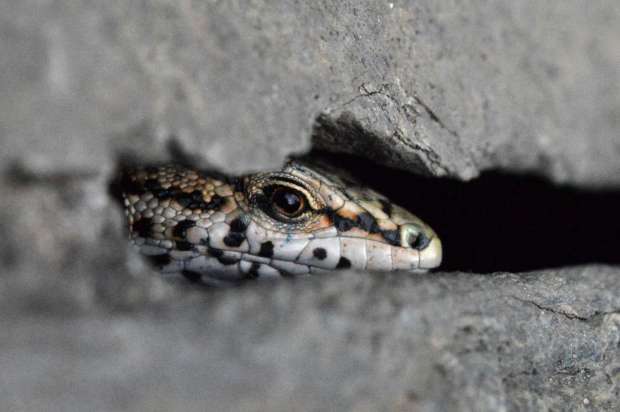 Fig 3. Podarcis liolepis en una pared del río Besós a la altura de Santa Coloma de Gramenet./ C. Pradera 05-2013