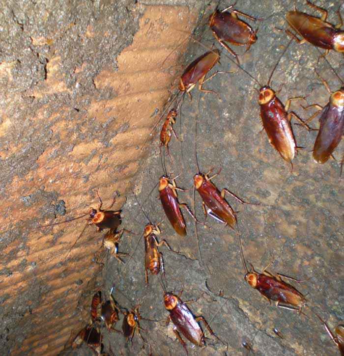 Foto 2. Una cucaracha americana metida en un huequecito de la pared de la fosa séptica./ Desinsectador abril-2013