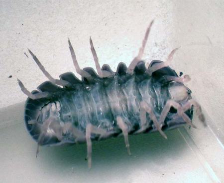 Fig 2. Armadillo officinalis puesto patas arriba. Se pueden contar los 7 pares de patas./ C. Pradera 05-2013