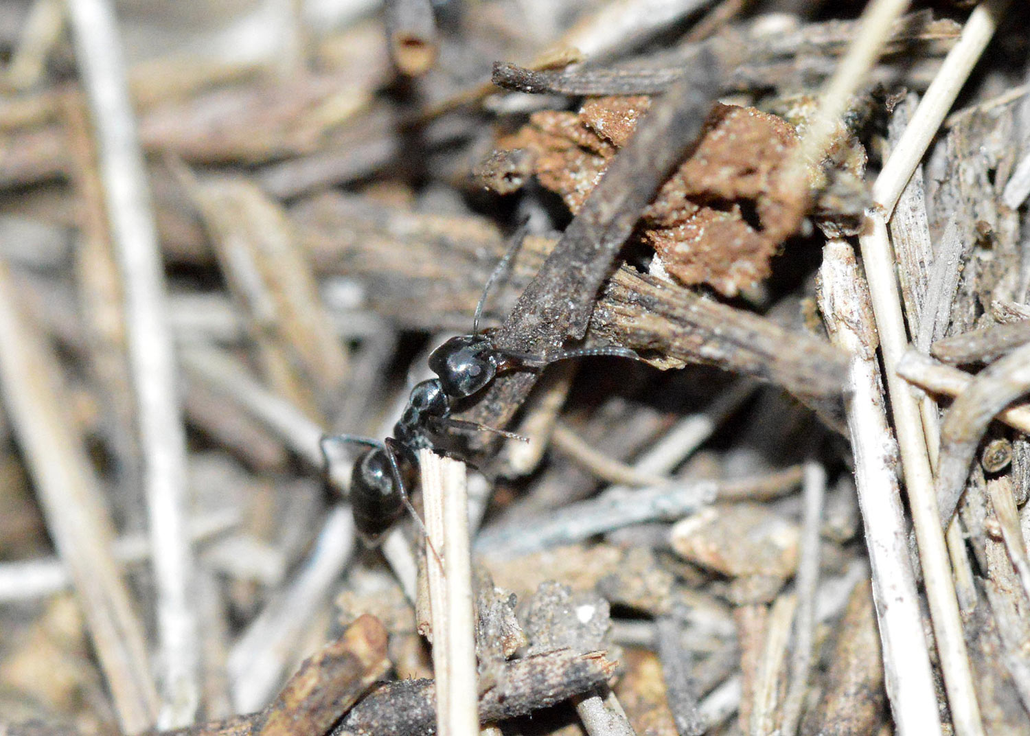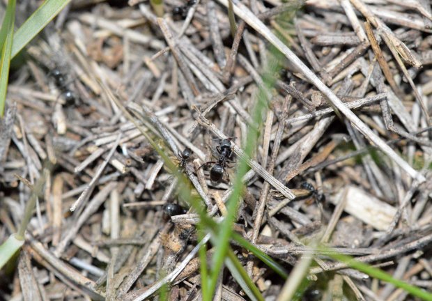 Muy interesante observación. Tapinoma nigerrimum (hormiga negra de jardín)es una especie que forma grandes colonias. Es una de las plagas más importantes de hormigas. Es bien probable que esta especie haya sustituido a la hormiga argentina. O también, que no se haya dejado pisar el terreno. Yo tengo un caso de un parvulario donde la hormiga negra de jardín impidió que la hormiga argentina se hiciera con el territorio.
