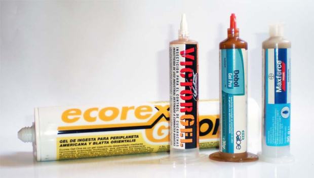 Fig 1. Diversos geles cucarachicidas de uso profesional presentados en envases de 30 y 350 gramos/ C. Pradera 05-2013