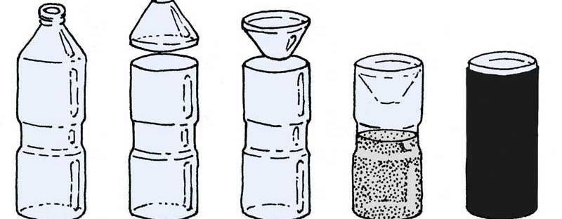Figura 1. Trampa para mosquitos hecha a partir de una botella reciclada. Dibujo retocado a partir del original publicado en cuidatujardin.com