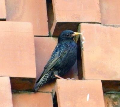 Las fotos de este posteo las hice en Cabrera de Mar (Barcelona). Pasé delante de una casa que tenía toda una pared de la fachada con unos ladrillos ornamentales que dejaban cavidades. En estas cavidades había una colonia de estorninos. Hace años, en este edificio, había estornino negro. En estos momentos, el estornino pinto había tomado el lugar y estaba en plena faena de buscar pareja. Como curiosidad, en la fotografía número 1 se puede ver un estornino con una ramita verde en el pico. Se trata seguramente de un ejemplar macho. Cuando llega el momento de buscar pareja, el macho busca un agujero para hacer el nido. Entonces decora el lugar con ramitas verdes. Mejor si son olorosas y atraen a la hembra. Mientras hace esto, no para de cantar. A mí me parecen extraordinarios sonidos de gran belleza y variedad. Cuando la hembra accede a ser la pareja, se apresta a desmontar la decoración y en montar un lugar más apropiados. Tras la cópula, esta pondrá unos cuatro huevos. Con esto se iniciará un nuevo ciclo. Y a seguir expandiéndose.