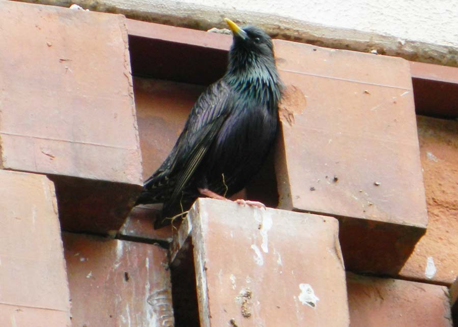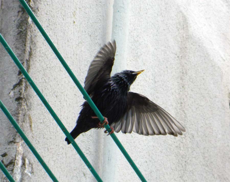 Foto 1. Estornino pinto con una ramita verde en el pico para cortejar a su futura esposa./ Desinsectador 2013