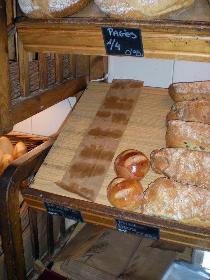 Fig 4. Estantería de una panadería donde se vieron las hormigas. Bajaban por el filo de esta estantería hasta tocar la madera que hace de tope para que no caigan los productos./ C. Pradera 05-2013