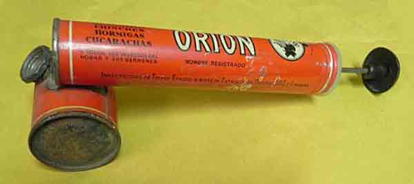 Parece ser que Dik no fue un éxito de ventas, ya que la competencia de las otras marcas era importante. En cambio, los papeles engomados Orion sí debieron ser un éxito. Así pues, imagino que aprovechando el tirón de la marca Orion a finales de la década de 1930 apareció un insecticida bajo este nombre. El contenido era muy similar al de Dik. En la página web del Grupo AC Marca se puede ver el primer cartel de 1939. Este insecticida, en la mísera etapa de la posguerra española, debía de tener éxito.