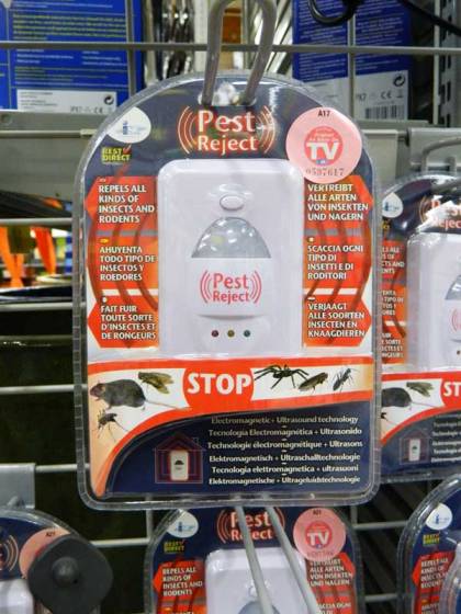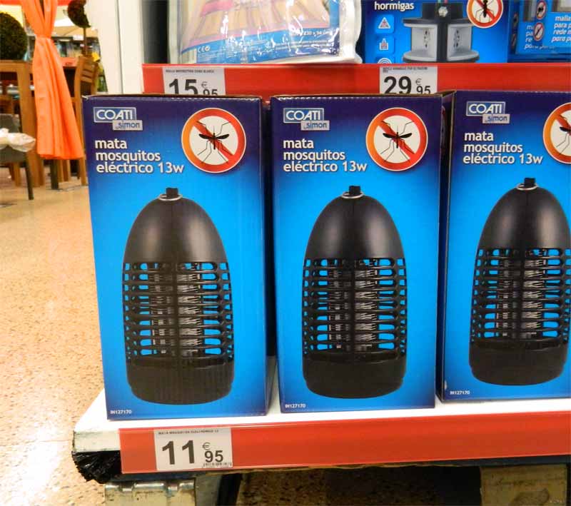 En un posteo anterior comenté el timo de los aparatos de ultrasonidos para alejar a los mosquitos. Llega el verano y, seguramente, estos aparatos sean comprados por personas inducidas por una publicidad fraudulenta. El pasado fin de semana visité una gran superficie para hacer unas fotos de estos aparatos. Me encontré que en la sección de jardinería había una estantería (foto 1) repleta de todo tipo de aparatos de ultrasonidos para repeler no solo mosquitos, sino todo animal no deseado. Además de estos, había un insectocutor (foto 3), mallas mosquiteras y pulseras antimosquitos (foto 2). Este estante pertenece a una importante empresa dedicada a la fabricación de material eléctrico como es Simon. No se trata de una empresa cualquiera. Si Simon pone a la venta aparatos que no han sido testados mediante pruebas de laboratorio, ¿qué hemos de pensar del resto de productos que tiene en su catálogo? Si estos aparatos de ultrasonidos funcionaran, digo yo que los laboratorios dedicados a fabricar productos biocidas los tendrían en su stock. Si este no es el caso, será que no funcionan. Entonces, ¿por qué estos aparatos de ultrasonidos están a la venta en establecimientos públicos? Pregunta difícil de responder. Creo que si un producto no es peligroso, es decir, no mata o no crea alarma social, no hay prisas en los ministerios de turno. Estos aparatos son puro placebo.