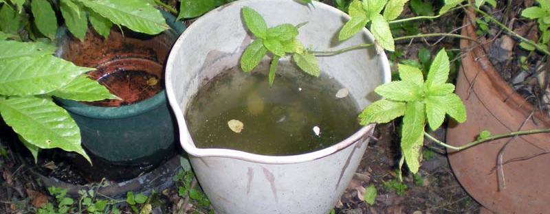 Fig 1. Cubo con agua de lluvia./ Desinsectador 10-06-2013