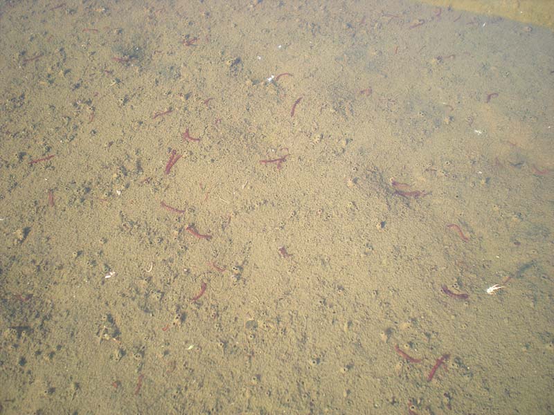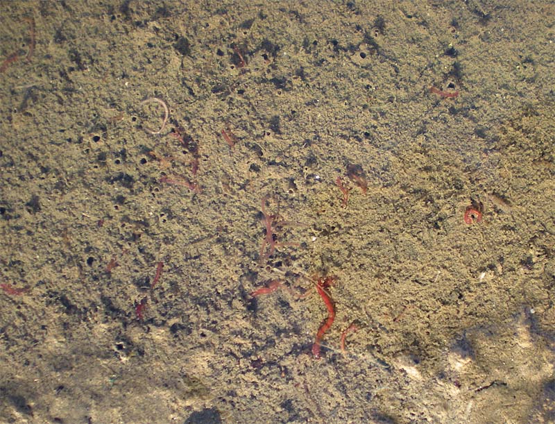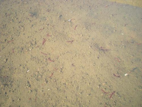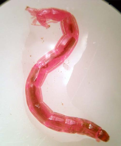 Fig 2. Larvas de quironómido en agua poco profunda estancada./ C. Pradera 05-2013