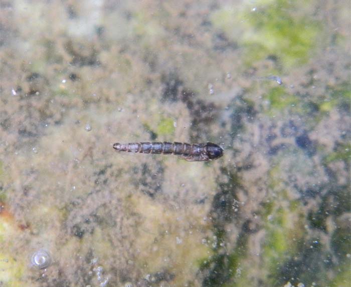 Fig 3. Larvas de quironómido en agua poco profunda estancada./ C. Pradera 05-2013