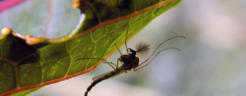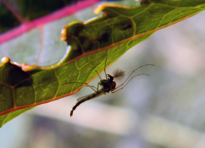 Fig 7. Quironómido macho bajo una hoja del árbol del ricino./ C. Pradera 05-2013